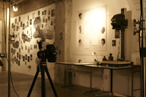 延べ4,000組の家族の軌跡と、引き伸ばし機などの暗室用具とともに、